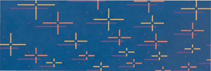 The theme of roaming formed the new principal focus in Yoshikawa’s creative work from 1998, again, impressively, for a whole decade. The series my silkroad (1998–2011) owes a great deal to the artist’s experiences with cosmic webs and to the sunshine and moonlight in the wintery heavens above Rome, as reflected in a roma. At the same time the evocative title, like the earlier hommage aux upanisad, was also a deliberately articulated poetic reference to the Far East. It was not only silk and other wares that travelled with traders from East to West along the Silk Road, an ancient network of caravan routes linking the Mediterranean to eastern Asia over land via Central Asia: armies and scholars took this route too. Yoshikawa made the Silk Road into her way back to Japan. While in earlier years she had also travelled to the Middle East, marveling at the night skies over the desert or sailing through the Suez Canal on her way to Ulm, she now in spirit journeyed “back” in the opposite direction by land and by water. The canvases, initially in portrait and later in large-scale extended landscape format, have intensive-colored grounds, with a luminescence stemming from the many superimposed homogenized layers. At the same time, they thus transport the turquoise and Samarkand blue tones without creating a sense of representation or abstraction, evoking atmospheric moods like spices. These works convey associative memories or projections of topography, along with hues of earth, fire, water and air derived from a journey across the Middle East and onwards to Pakistan, China and Mongolia. From 2004, recurring accumulations of small crosses appear on medium-size horizontal square formats, arranged in a dense circular configuration against a backdrop of cobalt and turquoise views of the night skies. In 2006 Yoshikawa began to present cross combinations like clusters of comets, thickly packed alongside and over one another, and set on an intense, luminous reddish-orange ground. It almost looks as if she had now reached China. In 2007–2008 she “set sail” with my silkroad on ocean – 1–8. Shortly before making “landfall in Japan,” entirely new light aspects appear in this series, in which distinct and intersecting color bars are arranged with a particularly strong emphasis on the horizontal above a white ground. Furthermore, the use of lightened red, blue and yellow is noteworthy here – a combination that Yoshikawa had on the whole previously avoided juxtaposing directly, choosing to either disrupt it or tone it down with shading. Unbidden, a sense of light reflecting off an undulating, moving surface of water during the ocean leg of her journey along the Silk Road springs to mind, along with an allusion to wave patterns propagated through space and time on calm water surfaces.
